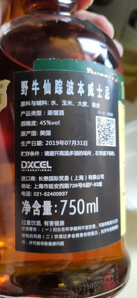 Shortly afterwards, 750ml 90 proof Buffalo Trace bottles started appearing locally and the price dropped significantly. From a high of nearly 350¥ ($54USD) down to a short bounce low of 165¥ ($25USD) per bottle. Along with that, a new Chinese label was being slapped on these: DXCEL. So I coyly asked Buffalo Trace distillery who their official distributor in China was. Their response: DXCEL. (I should also point out that other sellers were still peddling the 700ml 80 proof ‘versions’, usually at higher prices, and without the DXCEL label)