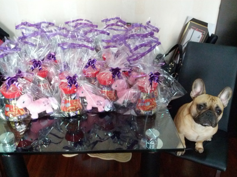We bought some candy at the local Century Mart and handed it out to all the people who take care of our apartment building: Management, Security, Maintenance, Cleaning, etc. There were 20 in all. Just our way of thanking them for keeping this place in such nice shape. The ladies got the pink horses with their candy, the men just got candy.
